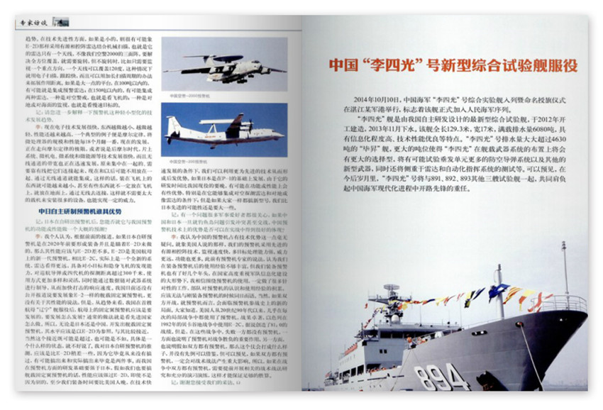 李昭平(以下簡稱李):現(xiàn)代室戰(zhàn)中已經(jīng)不能沒有預(yù)警機,它是整合空中各個作戰(zhàn)單元,形成統(tǒng)一戰(zhàn)斗力的核心和樞紐。日本比較早地認(rèn)識到了預(yù)警機的作用,自1982年開始采購E-2C預(yù)警機,1998年開始采購E-767預(yù)警機。大家知道,日本和美國在中日釣魚島爭端中,很早就投人了預(yù)警機進(jìn)行日常警戒巡邏。