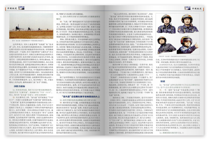 必須要掌握成才的基本規(guī)律和軍事訓(xùn)練的基本規(guī)律。盡管由于試飛職業(yè)的限制,我沒有親身經(jīng)歷“金頭盔”競賽,但我對它的關(guān)注度點都不亞于新機試飛,處于對軍事訓(xùn)練學(xué)和教育學(xué)的興趣,我對金頭盔獲得者的人才類型指向,有非常濃厚的興趣。
