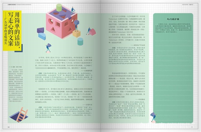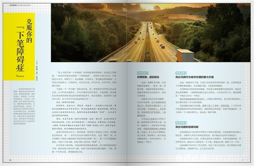 打開雜志,看到欄目“摘抄本”“高分范本”“精批細改”“經典講堂”“名師選修課”,你就會明白作文雜志編輯的良苦用心。它不僅“授人以魚”,而且“授人以漁”,它上面既有學生的優秀作文,又有名師指導的作文方法。有了這本雜志,就擁有了一位好的作文老師。