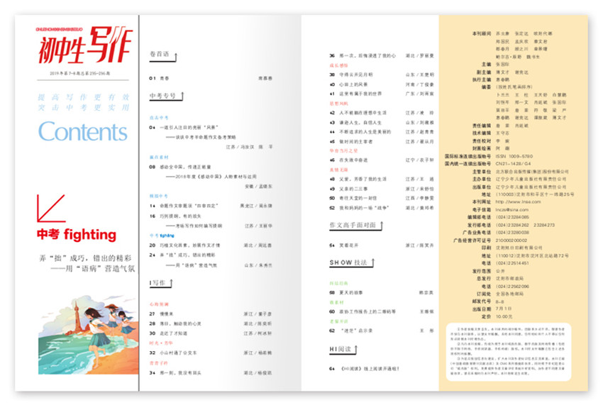 《初中生寫作》文風活潑輕松,語言簡明易懂,屢屢學習輔導界領軍作用的重頭文章,給人帶來了深刻的影響。由中國教育學會中語會和遼寧少年兒童出版社合辦的期刊,無敵中考:萬能應考,深度拓展寫作思路,真槍實戰,使你的分數迅速提高,以刊發初中生作品為主,特約名師、作家指導學生寫作。