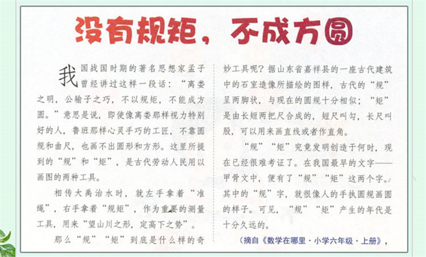 請好好說話,我曾經講過這樣一段話:“離婁之明,公輸子之巧,不以規矩,不能成方圓。 ”意思是說,即使像離婁那樣視力特別好的人,魯班那樣心靈手巧的工匠,不靠圓規和曲尺,也畫不出圓形和方形。這里所提到的“規”和“矩”,是古代勞動人民用以畫圖的兩種工具。
