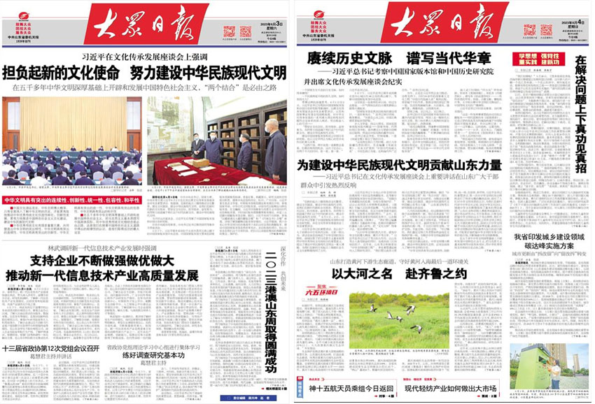 創(chuàng)刊之初,大眾日報(bào)就確立了“黨的立場,群眾的報(bào)紙”的辦報(bào)宗旨,始終以黨的旗幟為旗幟,以黨的意志為意志,以黨的使命為使命,成為馬克思主義中國化黨報(bào)實(shí)踐的生動(dòng)樣本。