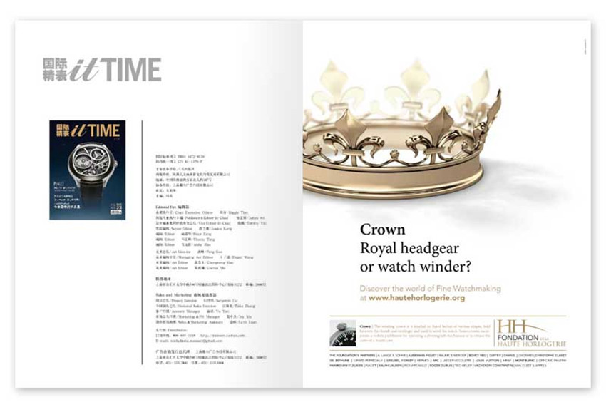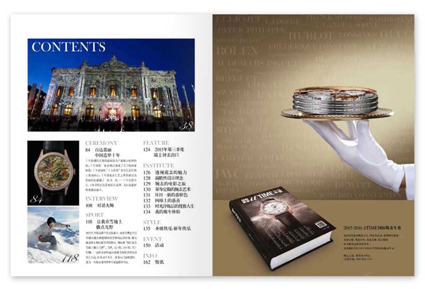 他們追捧各大精表品牌的新技術及看家本領。不滿足于現今國內市場上精表類的刊物,他們需要新、快、時尚的國際精表信息,以填補市場的空缺。同時,在LIFESTYLE角度他們急需引導,時常在為自己的腕表搭配怎樣的著裝而犯愁。