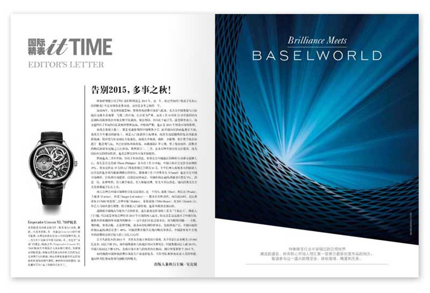 一本穿梭在高級腕表與時尚生活領域之間的雜志,以30~50歲的高端金字塔消費人群為主,在腕表領域我們體現“專”業(yè),在時尚領域我們體現“專”一,編輯理念遵循“專業(yè)”、“品味”、“實用”、“視覺”四個原則,一切以腕表為核心展開選題。讓專業(yè)更時尚,讓時尚更專業(yè)為國內讀者、表迷提供及時手國際鐘表訊息具備知名度。