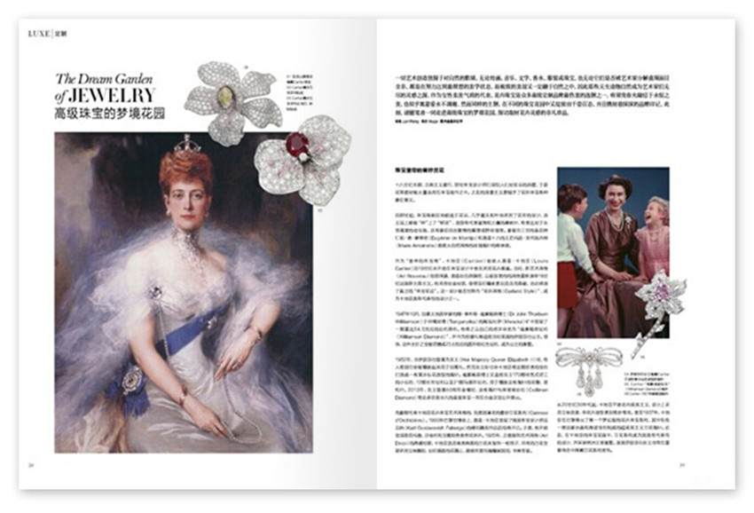 本原創(chuàng)時(shí)尚珠寶雜志,關(guān)注珠寶時(shí)尚、解讀尊貴生活、挖掘文化底蘊(yùn)、傳播思想智慧,定制:匠心設(shè)計(jì),精巧工藝,非量產(chǎn)的高級(jí)珠寶定制實(shí)乃誠(chéng)意之作。主要欄目:熱話、臻品、格調(diào)、傳奇、定制、創(chuàng)想、專題等。