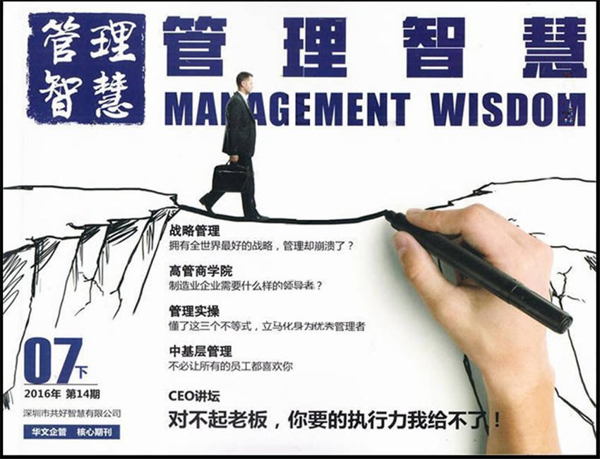 《管理智慧》雜志是深圳市共好資訊有限公司與中國文聯主管的《神州》雜志社共同研發的“華文企管《智慧專刊》”系列之一,是國內價格較高、不刊登廣告、憑精到實用的內容取勝的經管雜志。