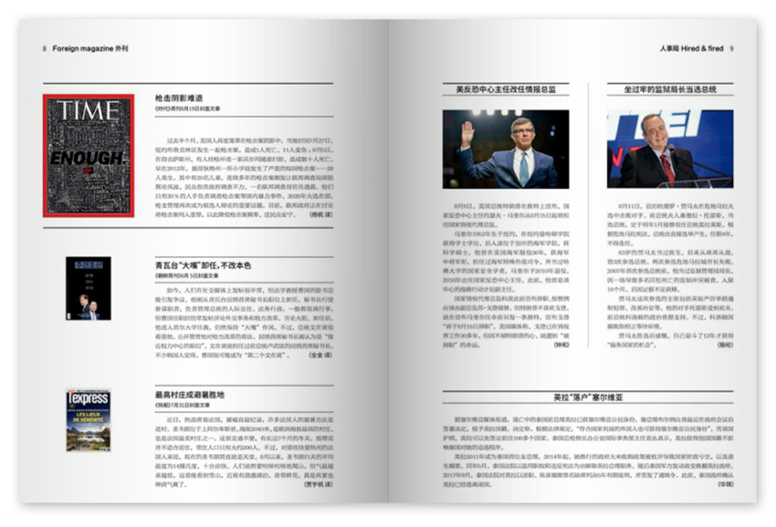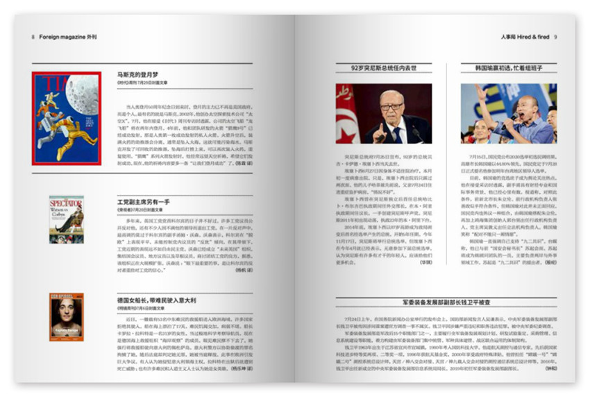 《環球人物》文風活潑輕松,語言簡明易懂,屢屢時政新聞界領軍作用的重頭文章,給人帶來了深刻的影響。