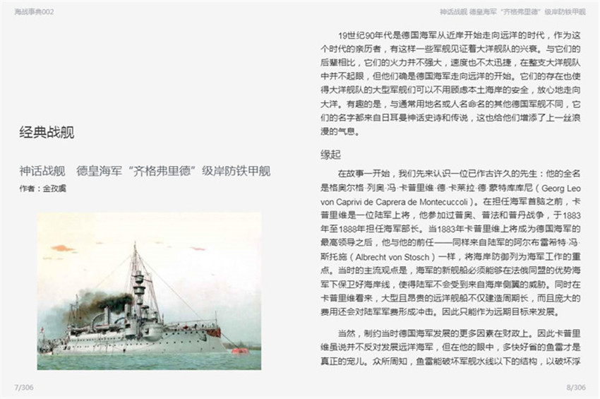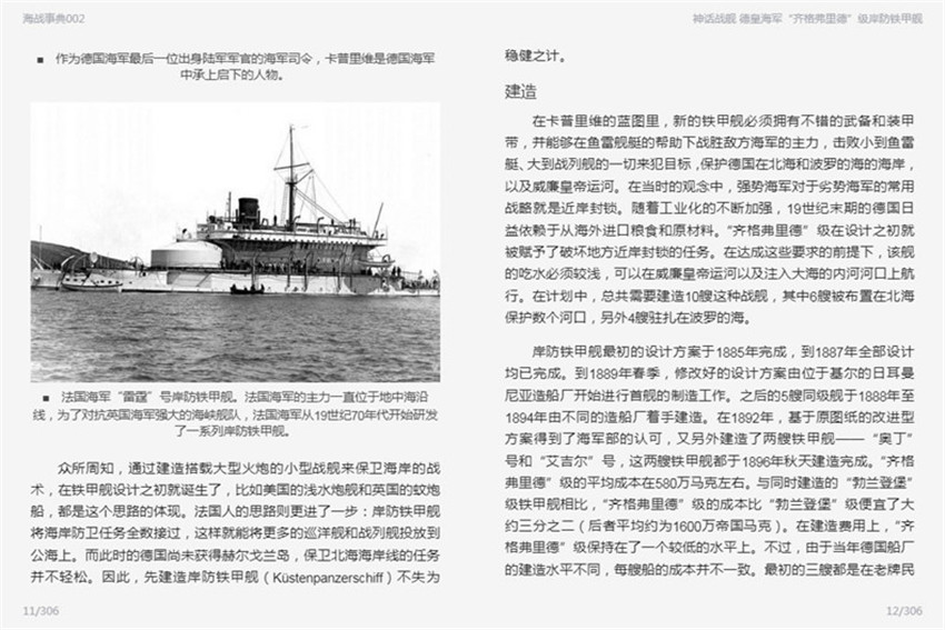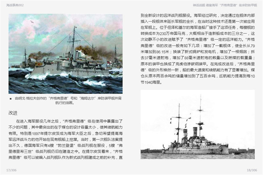 在德國(guó)海軍從小到大、從弱到強(qiáng)的歷史里,“齊格弗里德”級(jí)岸防鐵甲艦既是親歷者,也是旁觀者。大批合格的海軍官兵從“齊格弗里德”級(jí)上走下,來(lái)到其他的新戰(zhàn)艦上。它們的兢兢業(yè)業(yè)讓我們發(fā)現(xiàn)了積沙成塔的力量,《神話戰(zhàn)艦:德皇海軍“齊格弗里德”級(jí)岸防鐵甲艦》從“緣起”、“建造”、“技術(shù)指標(biāo)”、“改進(jìn)”、“歷史”數(shù)方面細(xì)敘了這組以日耳晏神話史詩(shī)和傳說(shuō)命名的岸防鐵甲艦,文中還穿插了一些命名的背景故事,圖文薈呈,頗具浪漫氣息。