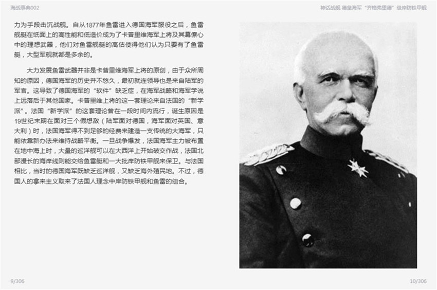 大力發(fā)展魚雷武器并非是卡普里維海軍上將的原創(chuàng),由于眾所周知的原因,德國(guó)海軍的歷史并不悠久,初就連領(lǐng)導(dǎo)也是來(lái)自陸軍的軍官。這導(dǎo)致了德國(guó)海軍的”軟件”缺乏癥,在海軍戰(zhàn)略和海軍學(xué)說(shuō)上遠(yuǎn)落后于其他國(guó)家。卡普里維上將的這一套理論來(lái)自法國(guó)的“新學(xué)派"法國(guó)“新學(xué)派”的這套理論曾在一段時(shí)間內(nèi)流行,誕生原因是19世紀(jì)末期在面對(duì)三個(gè)假想敵(陸軍面對(duì)德國(guó),海軍面對(duì)英國(guó)、意大利)時(shí),法國(guó)海軍得不到足夠的經(jīng)費(fèi)來(lái)建造一支傳統(tǒng)的大海軍,只能依靠新辦法來(lái)維持戰(zhàn)略平衡。一旦戰(zhàn)爭(zhēng)爆發(fā),法國(guó)海軍主力被布置。