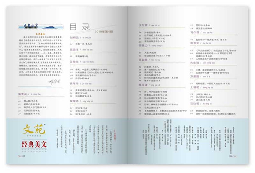 《文苑·經典美文》文風活潑輕松,語言簡明易懂,屢屢文學文摘界領軍作用的重頭文章,給人帶來了深刻的影響。以優美清新的經典文字、典雅別致的裝幀設計、獨特健康的閱讀理念、真誠互動的讀者服務深入讀者的心靈。