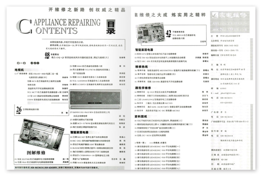 《家電維修》文風活潑輕松,語言簡明易懂,屢屢數碼通訊界領軍作用的重頭文章,給人帶來了深刻的影響。讀者對象覆蓋全國一線廠家、社會維修人員、電子愛好者以及各省、市地區電子市場配件經銷商。