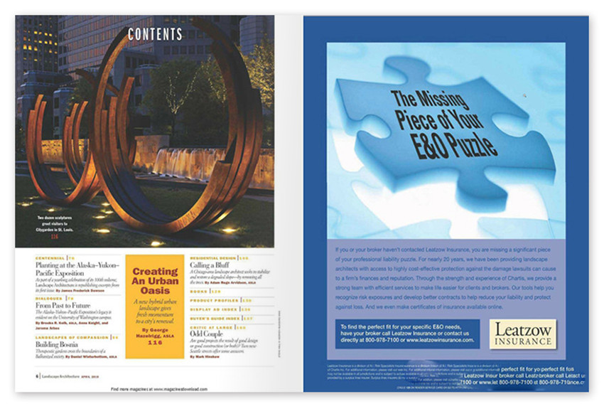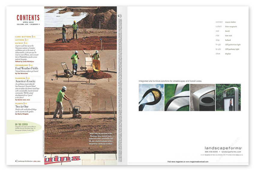 《景觀設計》文風活潑輕松,語言簡明易懂,屢屢藝術設計界領軍作用的重頭文章,給人帶來了深刻的影響。以專業出版者的視點,發覺景觀建設中所存在的各種環境問題、景觀問題和設計新潮,共同打造“國際化”知名雜志。
