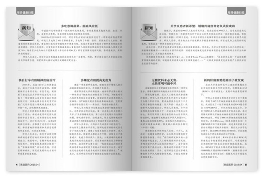 《家庭醫藥》文風活潑輕松,語言簡明易懂,屢屢健康養生界領軍作用的重頭文章,給人帶來了深刻的影響。通過飲食、中草藥、有氧運動、身心調理等,幫助讀者對衰老過程進行有效干預,應對健康危機,和養生大師一起探索抗衰防老秘方,掌握不生病的智慧。