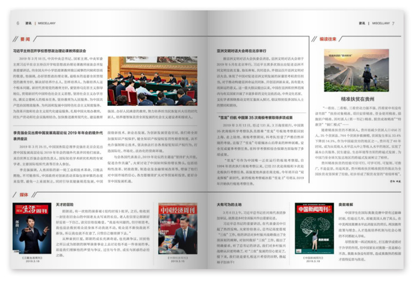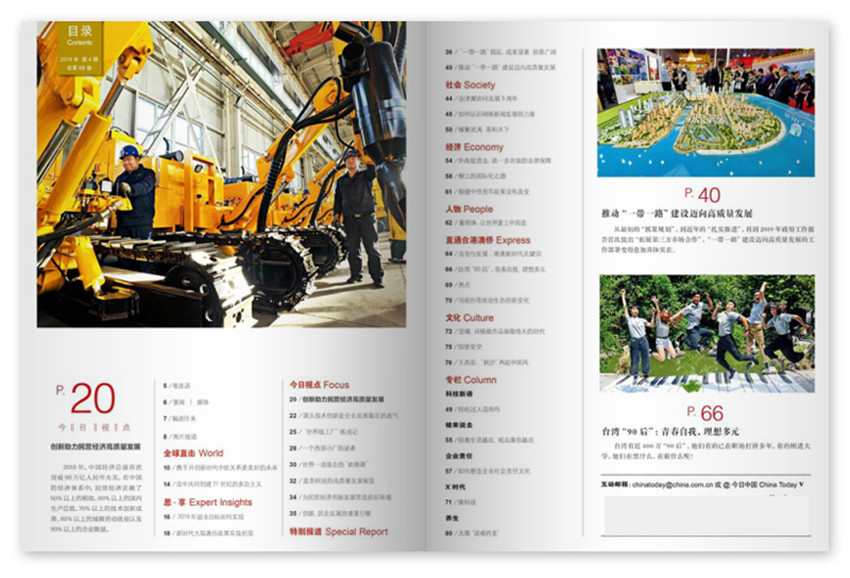 《今日中國》,文風活潑輕松,語言簡明易懂,屢屢領(lǐng)軍作用的重頭文章,給人帶來了深刻的影響。以精美的圖片和簡潔的文章向您展示中華民族幾千年的文明瑰寶,介紹在現(xiàn)代化進程中,中國在經(jīng)濟、社會、文化等方面的巨大變化,以及它給人民生活帶來的變化。除此之外,還向拉美讀者推薦中國的旅游勝地、休閑娛樂場所,以及具有奇特功效的、以中醫(yī)理論為基礎(chǔ)的美容、健身、延年益壽的方法。讀者對象為地區(qū)關(guān)注中國的各界人士。