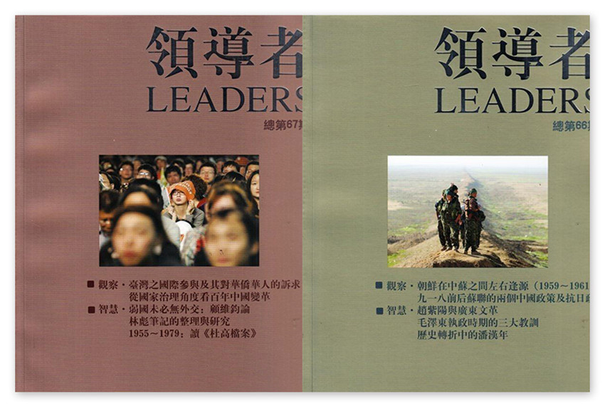 中國一本針對領袖人群的高端大型雜志,主要內容涉及政治、經濟、軍事、外交的戰略性全局性的觀點和思考;重大歷史事件的回顧;世界著名領袖的傳記;科技新資訊;高端人群關注的醫療、健康、出行、收藏、置業等。