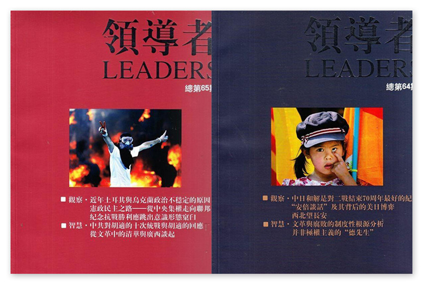 《領導者》雜志是中國一本針對領袖人群的高端大型雜志,主要內容涉及政治、經濟、軍事、外交的戰略性全局性的觀點和思考;重大歷史事件的回顧;世界著名領袖的傳記;科技新資訊;高端人群關注的醫療、健康、出行、收藏、置業等。