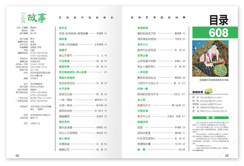 《女報?故事》雜志由國際頂級漫畫大師莫迪洛鼎力支持,深圳女報雜志社隆重出版,通俗而不低俗,巧妙演繹故事,妙趣橫生;幽默而不沉默,大膽正視現(xiàn)實,直言不諱,融紀實性和故事性于一體,時尚新銳、深沉穩(wěn)重,以不同于傳統(tǒng)故事的新穎視角,讓讀者耳目一新。