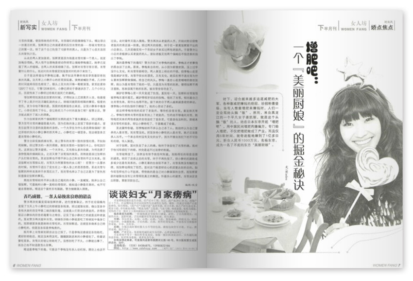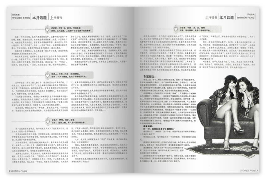 《女人坊》雜志多年來貴在不斷適應市場,并多次調整版塊、欄目、風格、版式、印刷,一步一個腳印,一年一個臺階,從只在國內發行到走向國際書刊市場。