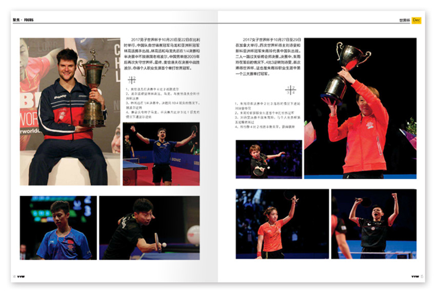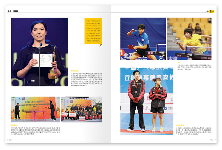 《乒乓世界》文風(fēng)活潑輕松,語言簡明易懂,屢屢體育運動界領(lǐng)軍作用的重頭文章,給人帶來了深刻的影響。展示中外選手的成才之路及的訓(xùn)練方法和技術(shù),是廣大乒乓球愛好者的良師益友。