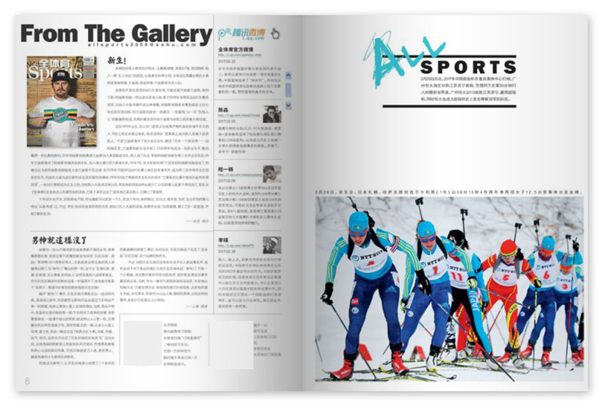 《全體育》雜志是《體壇周報》旗下一本帶有鮮明娛樂與時尚風格的體育月刊,現已成為中國影響力較大的綜合體育雜志。