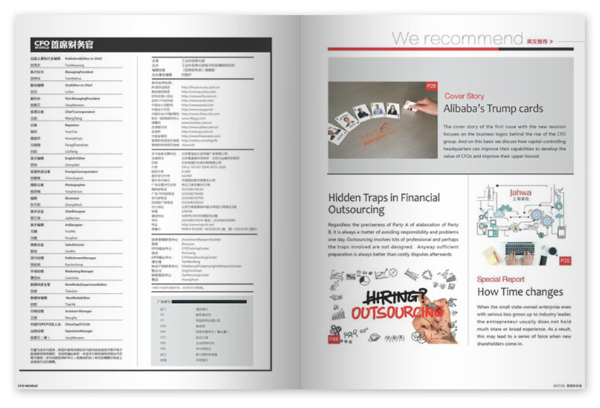 《首席財(cái)務(wù)官》雜志是目前CFO領(lǐng)域內(nèi)覆蓋為廣泛的、規(guī)模較大的、公開(kāi)出版的大型部級(jí)專業(yè)期刊,自創(chuàng)立以來(lái)深受涵蓋國(guó)企、本土及海外上市公司、民營(yíng)企業(yè)和外資企業(yè)的CFO們所喜愛(ài),發(fā)行量高達(dá)16.2萬(wàn)份,是該領(lǐng)域內(nèi)發(fā)行量和出版規(guī)模較大的雜志。