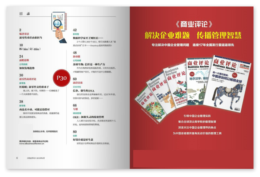 《商業(yè)評(píng)論》文風(fēng)活潑輕松,語(yǔ)言簡(jiǎn)明易懂,屢屢財(cái)經(jīng)界領(lǐng)軍作用的重頭文章,給人帶來(lái)了深刻的影響。管理圣經(jīng),整合國(guó)際新管理研究成果,開(kāi)發(fā)中國(guó)本土優(yōu)秀管理實(shí)踐,致力于提供中國(guó)商業(yè)環(huán)境下有效的管理思想、方法和案例,幫助中國(guó)企業(yè)解決管理問(wèn)題。