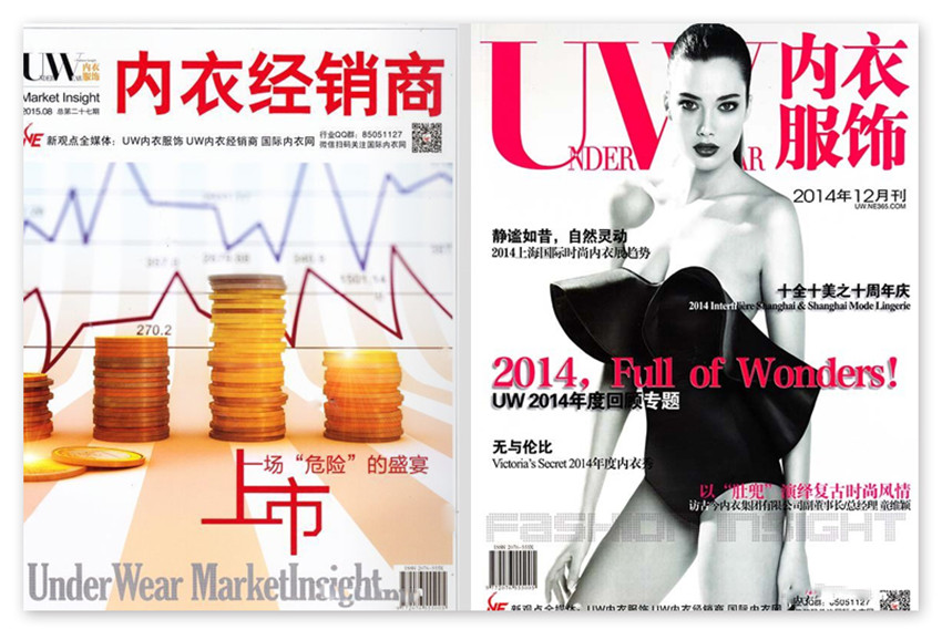 《UW內衣服飾》雜志受到眾多中國內衣設計師的歡迎;關注行業動態,堅持專業的視角和客觀的立場,通過專題、調查、訪問和評論等多種形式對國際內衣界進行深度探究,為中國內衣企業的發展提供國際視野。