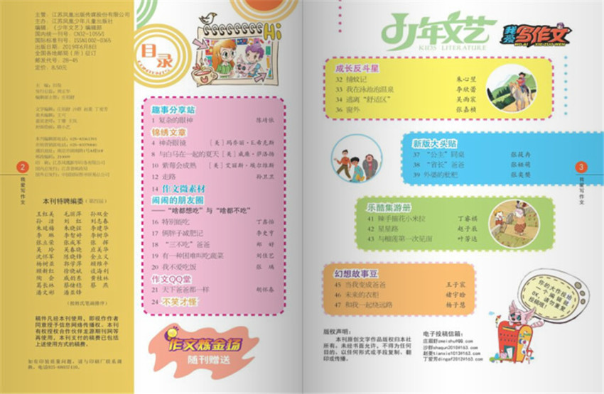 《少年文藝·我愛寫作文》緊扣教材,提供寫好作文的實用技巧雜志與孩子們的教材接軌,通過師生趣味互動,展示寫作文的技巧,為孩子寫好作文打下堅實基礎。雜志中隨處可見的好詞、好句、好素材也適合運用到作文中,孩子也可以在國內外作品、生活中的素材寫作、學生習作中汲取養分。