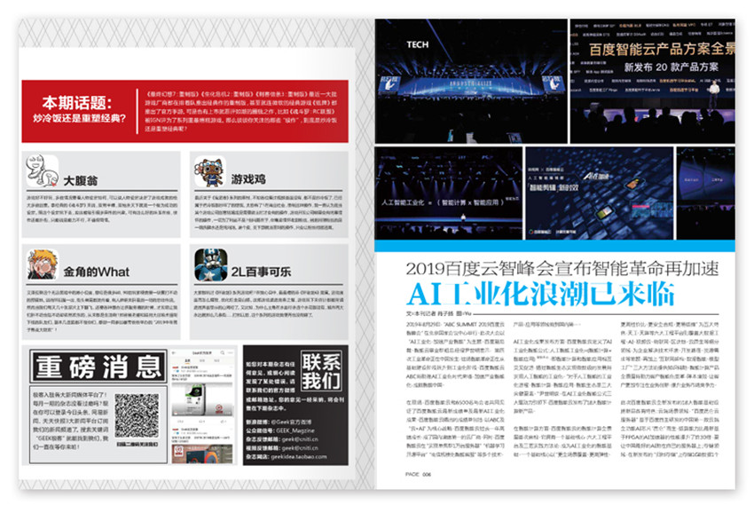 《微型計算機·極客GEEK》除了將電腦、電子方面的科學技術、產品作為主要報道方向外,還將汽車、機械、物理、化學、材料及能源等與生活密切相關的科技信息逐一解密,并提倡一種新時代的DIY理念,讓讀者可以親自體驗科技改變生活的快感。文風活潑輕松,語言簡明易懂,屢屢數碼通訊界領軍作用的重頭文章,給人帶來了深刻的影響。
