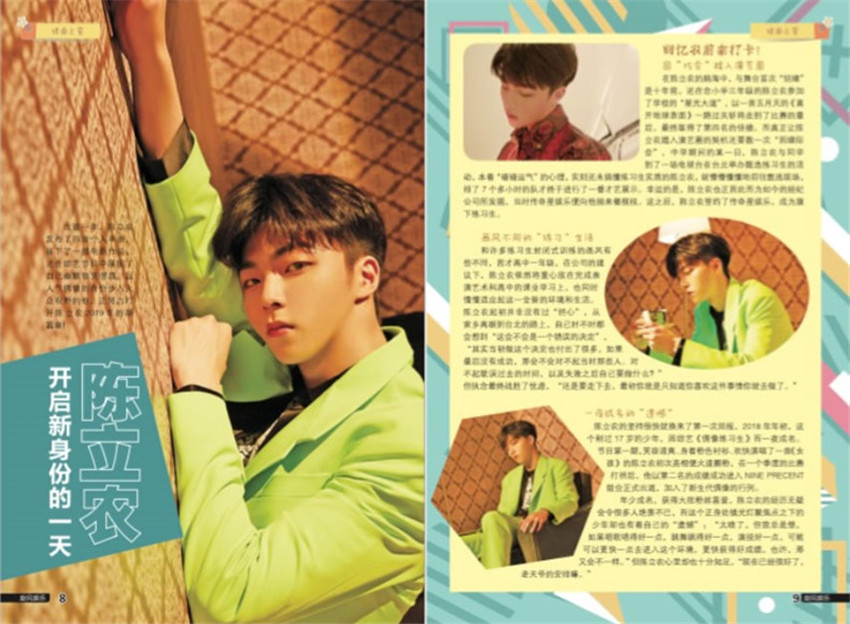 陳立農出生于臺灣省高雄市,小時候幫忙分擔家計,9歲便跟隨父親在夜市賣烤魷魚,初中三年級與家人在夜市賣雪糕,陳立農高中就讀于南強工商表演藝術科;2015年,他被星探挖掘,并在臺灣參加了選秀比賽。之后,他與傳奇星娛樂簽約,成為旗下練習生。2018年1月,參加愛奇藝偶像男團競演養成類真人秀節目《偶像練習生》,在首輪才藝考核中,獲得了A等評價。