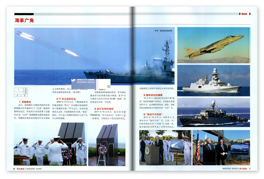 主要介紹國內外海軍戰略發展變革、新技術的應用、世界新型艦船、新型艦載動力、武器、電子設備的介紹、鮮為人知的歷史事件與歷史名艦,同時也安排了一些相關知識的介紹、模型制作文章、知識競答、讀者論壇等內容。既是專業人員的刊物,也是適合非專業人士的科普讀物。
