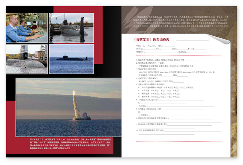 內(nèi)容具有性、導(dǎo)向性、前瞻性、可讀性,深受軍事、政治、經(jīng)濟(jì)研究人員、部隊(duì)專業(yè)人員和廣大軍事愛(ài)好者的喜愛(ài),以其性、導(dǎo)向性、理論性、前瞻性、可讀性,深受軍事、政治、經(jīng)濟(jì)研究人員、軍工貿(mào)人員、部隊(duì)官兵以及廣大軍事愛(ài)好者的喜愛(ài),已成為國(guó)內(nèi)外有影響的、我軍武器裝備與軍事技術(shù)領(lǐng)域的性軍事期刊。
