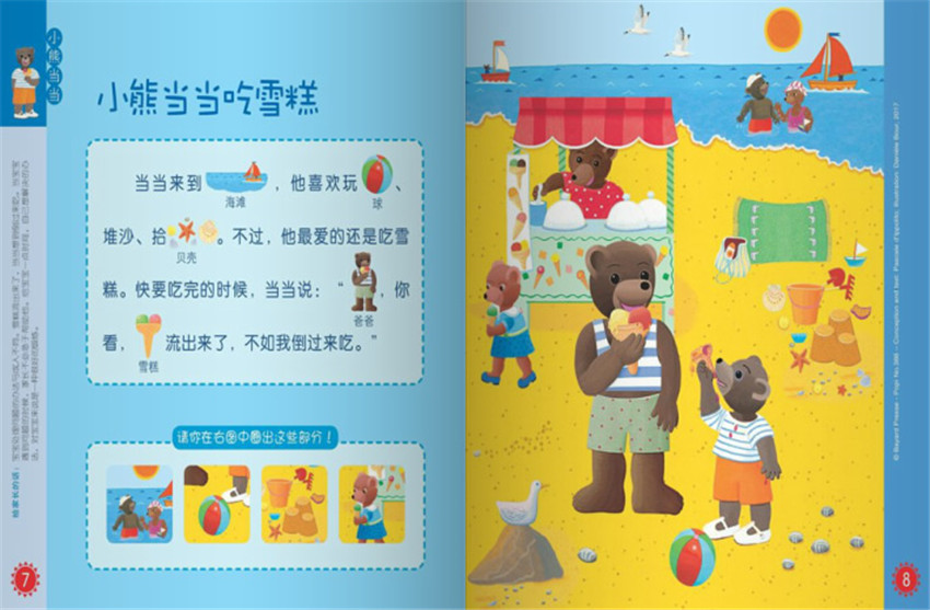除了故事以外,還有適合寶寶動手的手工游戲,這些都是我和兒子很喜愛的地方。它能鍛煉寶寶協調能力、動手能力,更是親子交流的方式。書里面有個故事叫《觀察小昆蟲》,里面的這些小昆蟲采用了高保真的圖片,十分清晰寫真,而且每種動物都注明了它們的特點,好懂易記。