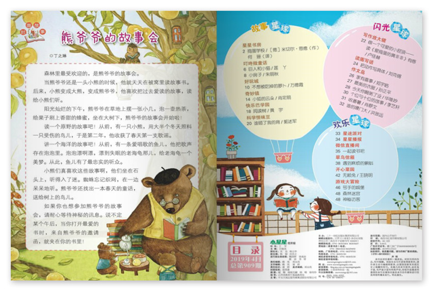 《小星星》文風(fēng)活潑輕松,語言簡明易懂,屢屢學(xué)習(xí)輔導(dǎo)界領(lǐng)軍作用的重頭文章,給人帶來了深刻的影響。雜志提供了一個(gè)平臺(tái),提供了一個(gè)讓小朋友可以充分展示自己的機(jī)會(huì),在每一期的雜志中,我們都可以欣賞到許多小朋友不同主題、不同風(fēng)格的作品。