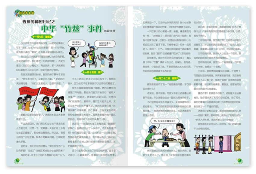 點點滴滴積累作文素材。設有主題寫作,作家創作秘笈、千字故事串串燒、讀故事學作文,瘋狂愛上閱讀,快樂得到獨家作文寶典,不可不看耶!全彩內文,圖文并茂,有故事、有典故、有趣味、有成語,是學生書包里常備的趣味讀物。