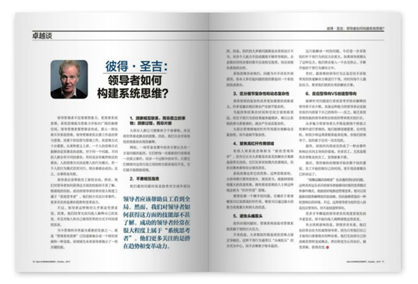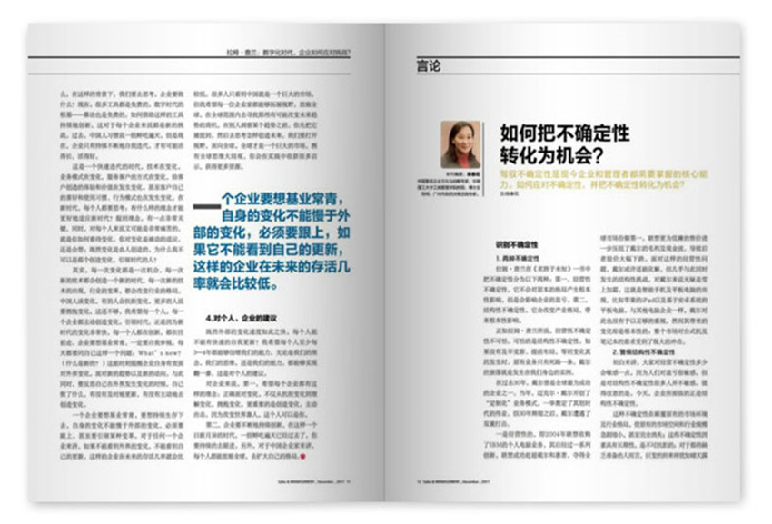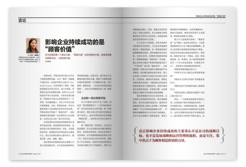 作為中國管理類雜志的新秀,一直遵循前瞻性與實用性并重的理念,不斷為中國企業(yè)管理者提供全面客觀精準的理論指導與實踐分析、辦刊宗旨:提升企業(yè)中高層管理者的綜合管理能力、雜志定位:卓越實踐、引領成長、核心讀者:公司高管、合伙人、中高層管理人員、專業(yè)人士等等。