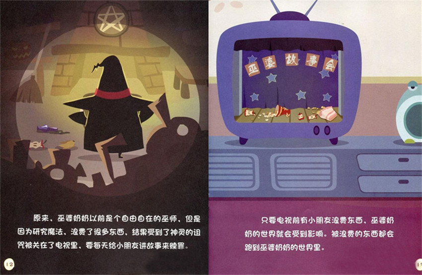 原來、巫婆奶奶以前是個目由自在的巫怖,但是因為研究魔法,浪費了很多末西、結果受到了神靈的沮咒被關在了電視里、要每天給小朋友講故事來贖罪。只要電視前有小朋友浪費東西,巫婆奶奶的世界就會受到影響。被浪費的東西都會跑到巫婆奶奶的世界里。