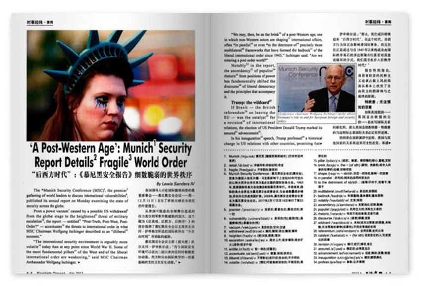 《英語文摘》內容詳實、觀點新穎、文章可讀性強、信息量大,眾多的欄目設置,英語文摘公認譽為具有業(yè)內影響力的雜志之一。