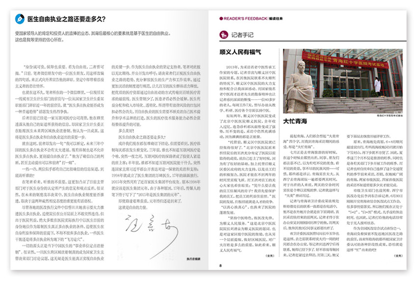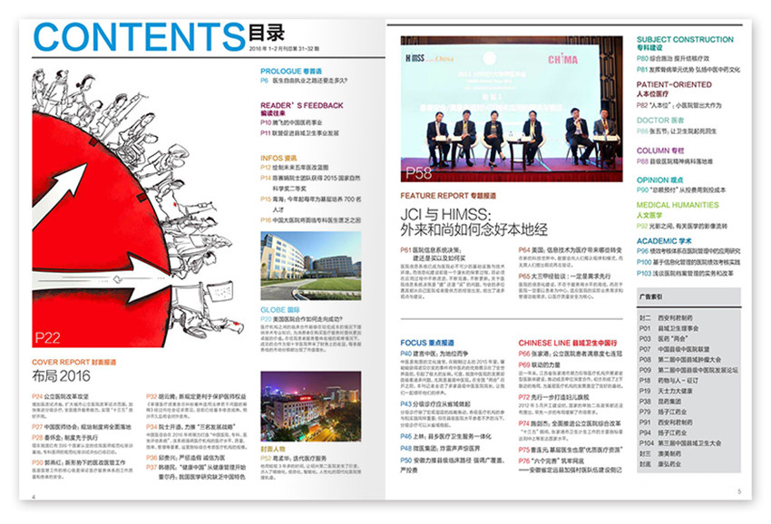 雜志報道圍繞國家醫改政策深度解讀傳遞、基層醫療衛生改革政策解讀、各地縣區醫院改革試點案例分享、醫院管理經驗交流、對話縣域醫療衛生主管領導。