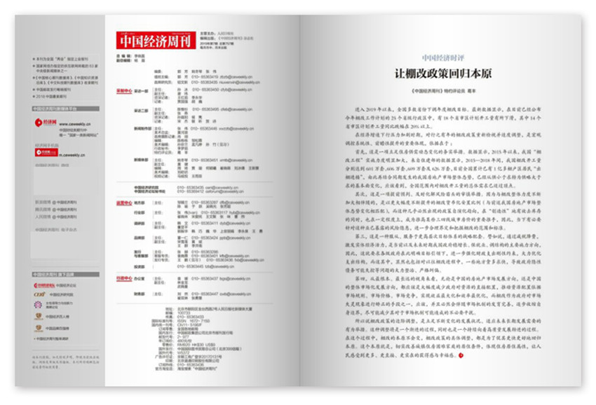 《中國經(jīng)濟周刊》雜志定位于“領導者決策的經(jīng)濟參考”,以政經(jīng)為主的綜合經(jīng)濟類期刊,為中央、地方及企業(yè)的領導層提供有決策借鑒價值的資訊,做中國經(jīng)濟轉(zhuǎn)型的真實記錄者,中國經(jīng)濟國際化的理性觀察者,中國經(jīng)濟復興的歷史見證者。