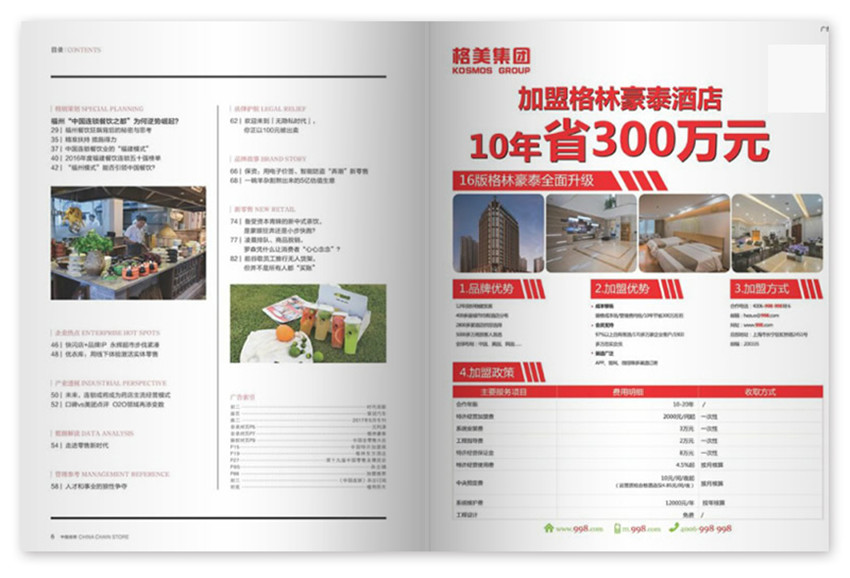 全國目前一本面向連鎖創業創富精英的高端雜志,打造連鎖行業及相關聯企業精英人士的泛財經類行業標桿讀本,中國連鎖雜志,全彩輕圖精美印刷,每冊128頁碼,發行采取郵局全國訂閱、自辦郵發、機場及精品報攤零售三個渠道,面向全國渠道發行,定價15元每冊。