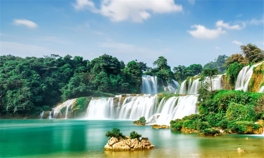 德天瀑布位于廣西壯族自治區崇左市大新縣碩龍鎮德天村,中國與越南邊境處的歸春河上游,瀑布氣勢磅礴、蔚為壯觀,與緊鄰的越南板約瀑布相連,是亞洲及時、世界第四大跨國瀑布,年均水流量約為貴州黃果樹瀑布的三倍,為中國國家AAAAA級旅游景區。還是酒是故鄉醇和花千骨的外景拍攝地,神奇而美妙。國家旅游局和環保部擬認定廣西自治區崇左市大德天景區為國家生態旅游示范區。