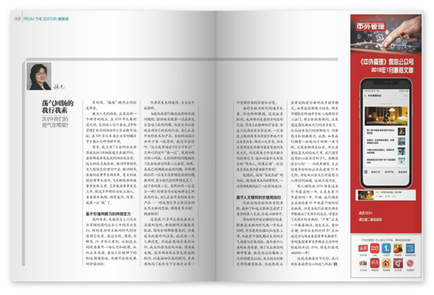 《中外管理》文風活潑輕松,語言簡明易懂,屢屢財經界領軍作用的重頭文章,給人帶來了深刻的影響。