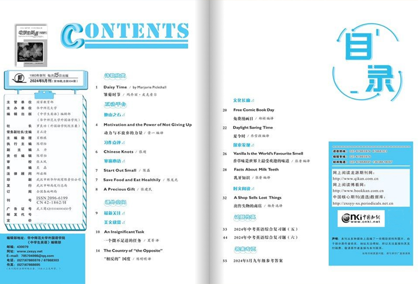 《中學生英語》雜志作為一本深受廣大中學生喜愛的英語學習刊物,多年來憑借其高品位、高質量、高效率的辦刊特色以及高素質的編輯團隊,在全國范圍內贏得了極高的聲譽,成為了中學生英語學習領域的一顆璀璨明珠。該雜志始終秉持著思想性、知識性、時尚性、趣味性和互動性相結合的辦刊理念,致力于在英語課堂教學之外,為中學生提供一個更加豐富、多元且富有吸引力的學習平臺。通過精心策劃的內容和形式多樣的欄目設置,它不僅能夠輔助英語課堂教學,幫助學生更好地鞏固課堂所學知識,還能夠極大地提升學生對英語學習的興趣,拓寬學生的認知視野,進而全面提高學生的英語綜合能力,包括聽說讀寫譯等各個方面。