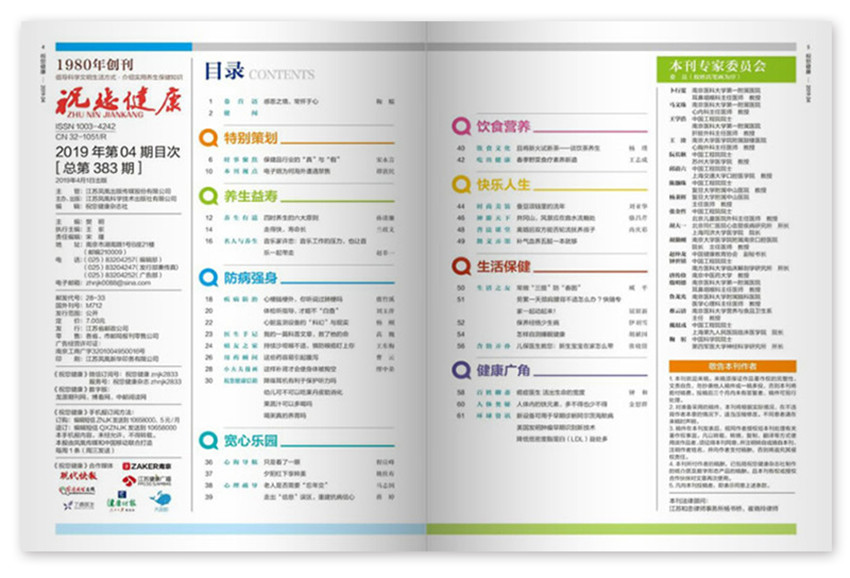 《祝您健康》文風活潑輕松,語言簡明易懂,屢屢健康養生界領軍作用的重頭文章,給人帶來了深刻的影響。主要板塊包括有本刊視界、健康紀事、天天養生、心海導航、家庭醫生、婦幼天地等等。