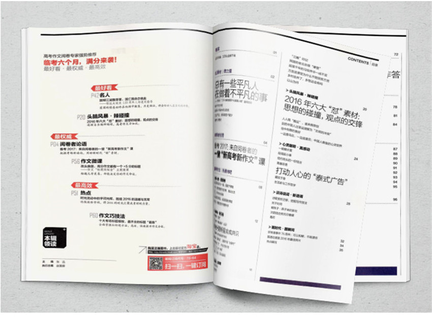 《作文素材》雜志緊跟時展,提煉新鮮有思考的社會熱點,同時不失傳統性。新鮮素材+傳統素材,讓孩子素材兩手抓,讓作文有層次感。每年還會推出“時政特刊”,帶學生總結時政考點,備戰高考。