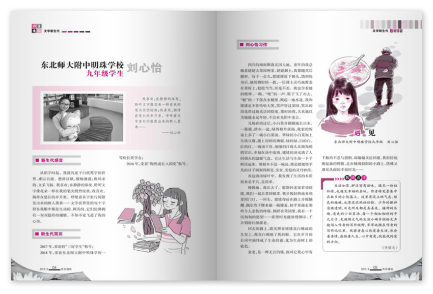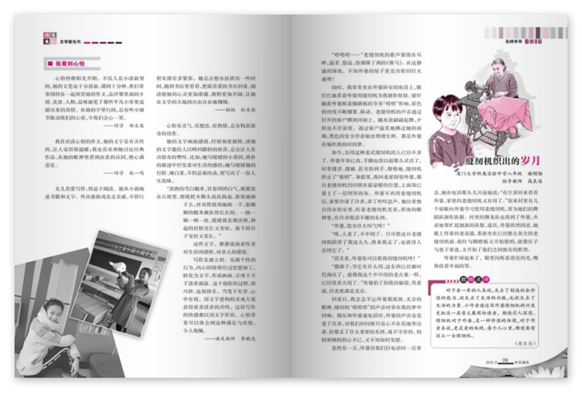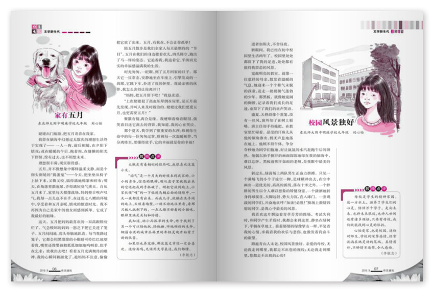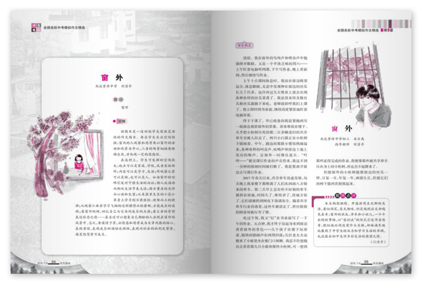 《作文通訊》文風(fēng)活潑輕松,語言簡明易懂,屢屢學(xué)習(xí)輔導(dǎo)界領(lǐng)軍作用的重頭文章,給人帶來了深刻的影響。通讀《作文通訊》全刊,一個“美”字如涓涓細(xì)流一樣淌過我和學(xué)生們精神家園的門前。封面美,美在設(shè)計上。封面前一個著淡妝的少女坐在石頭上,望著遠(yuǎn)方在深思,亦在憧憬,自然吸引了讀者的眼球。