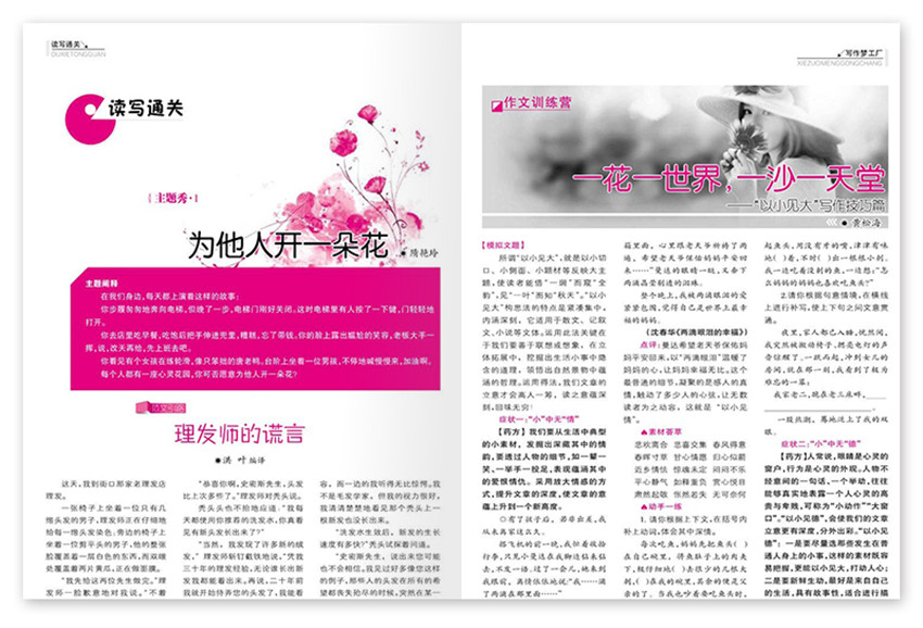 目標明確,成為作文技法指導與素材供應平臺,匯聚名師,依托全國作文名師考研中心,匯集名師,成就作文期刊;主要欄目:作家零距離、寫作夢工廠、佳作現場、讀寫通關、素材庫、好書新薦等。