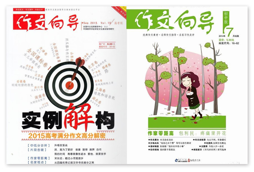 《作文向導》雜志讓作文得高分、不丟分——名師導航素材分析與運用,切實可行的考場作文技法、范文帶路,有效的評價策略,熟練運用作文的十八般武藝,讓你胸有成竹思如泉涌,提高你的寫作基本功——呵護學生的寫作熱情,真正提高學生的寫作水平,成就一生的寫作基石。