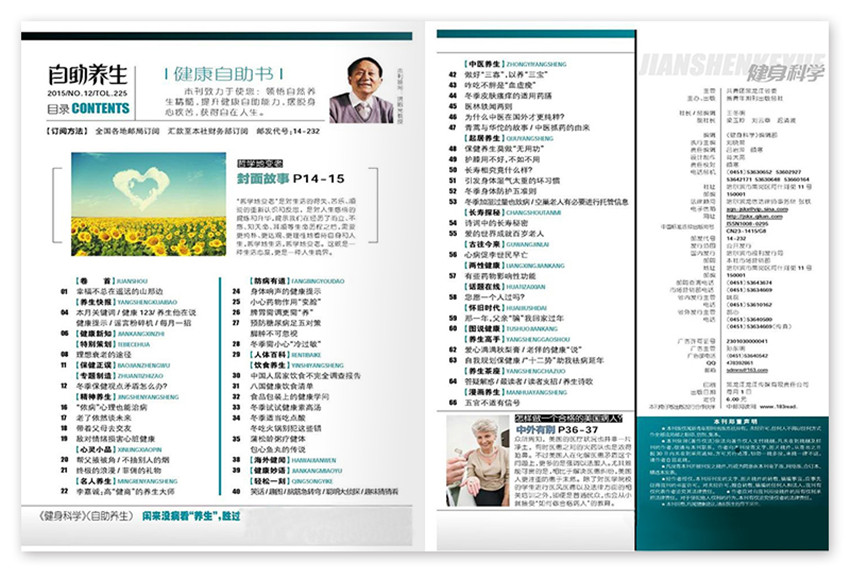 以40-60歲的中老年人為主要讀者群體,定位于有一定經濟條件同時關注養生、有精力有時間有能力的中老年人,除了傳達“以養防病、以養祛病”的理念外,還會是一本關注中老年人及家庭成員身心健康的養生期刊。